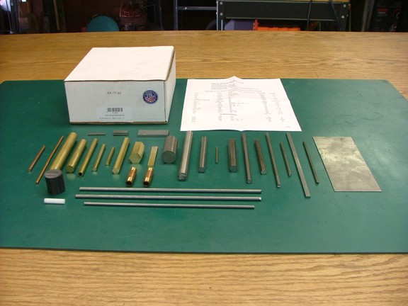 I am in short supply of model engineering stock so I opted to purchase the additional materials kit (Cat# R-BAR) for $75 (seen below). This collection has all of the raw stock to finish all of the nuts, bolts, screws, pins, axles, valves, washers, fittings and other parts (barring the drip oiler and drain valve assemblies). The kit comes with a parts list that cross references the drawing numbers with the type of stock used to make the part which is not always shown on plans.