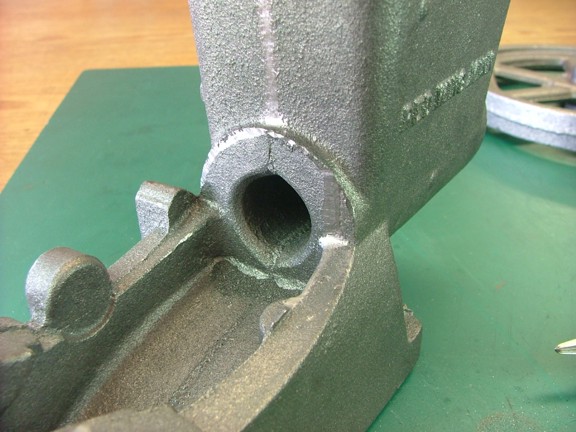 I used a 36 grit flap-disk to clean up the head casting where the molding flash was removed. I had to grind down quite a ways to clean up the grinder marks left by the foundry.