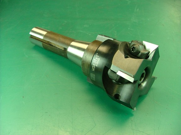 I decided to mill the bottom flat with a 2.5” face mill cutter as seen below. It has indexable carbide tips that are very sharp. This type of cutter makes very clean cuts.