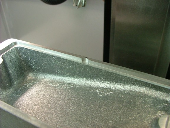 This particular kit comes with the option of an integral fuel tank that can be added to the base of the engine frame. This requires that a pocket be milled into the base to allow a fuel tank bottom to be installed. The manual suggests using a dovetail cutter to machine a lip on the inside of the base so a steel plate can be epoxied into the grove. I am not a big fan of epoxy when it is exposed to liquid fuel for prolonged periods (not to say that this method does not work just fine). I opted to use a 3/8” end mill to cut a square edged pocket that measures 6.430”L x 2.695”W x .125”D as seen below. This pocket will hold the steel plate as suggested but will be held in place with screws in lieu of epoxy.