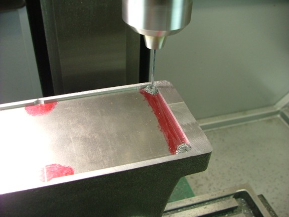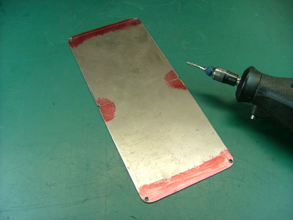 Using the plate as a drill guide I drilled four #49 holes .250” deep on the outer corners.