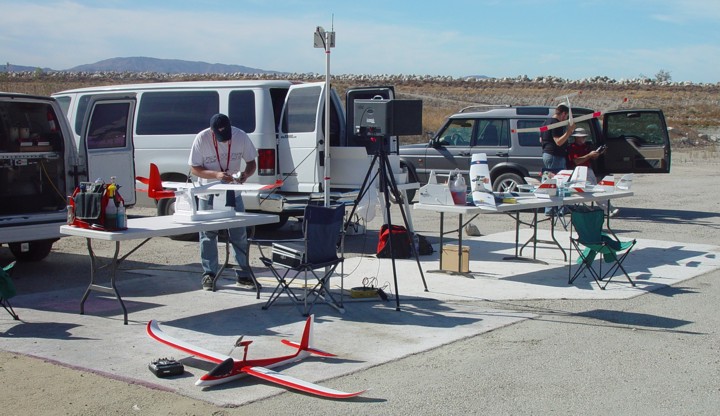 Motor position: 5” behind the trailing edge at 10 degrees of down thrust. Camera angle: 6 degrees down angle. Propeller drill size: 5/16” Motor current @ 13 volts: 8.3 amps Camera/transmitter current: 350 mA Flight time: 16 minutes @ full throttle. Average flight time: 25 minutes Camera/transmitter duration: 3 plus hours with a 1320 mAh pack.